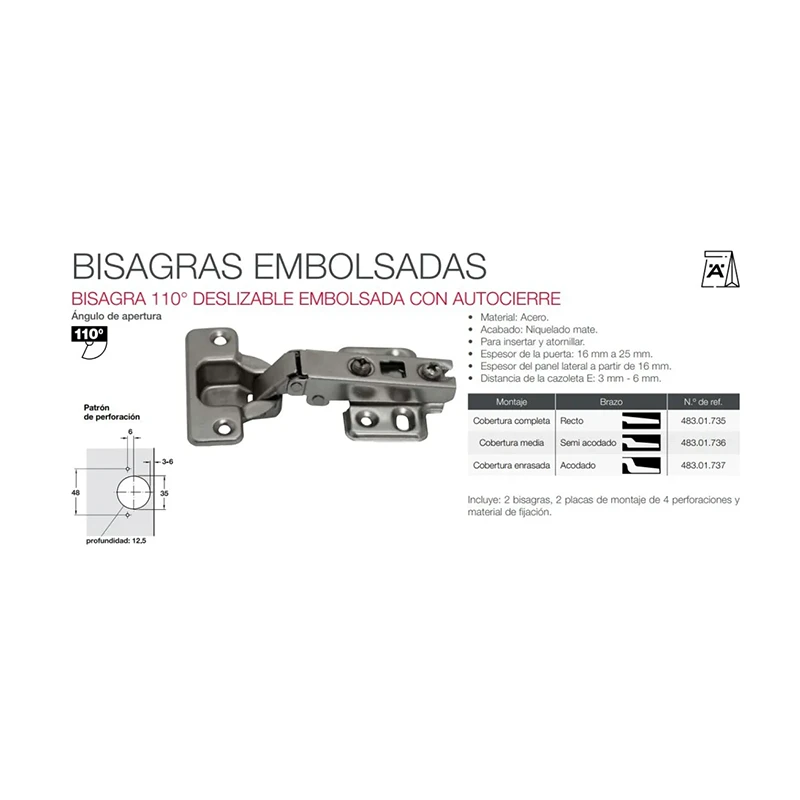 BISAGRA BIDIMENSIONAL / RECTA / 35MM / (LPM) cantidad