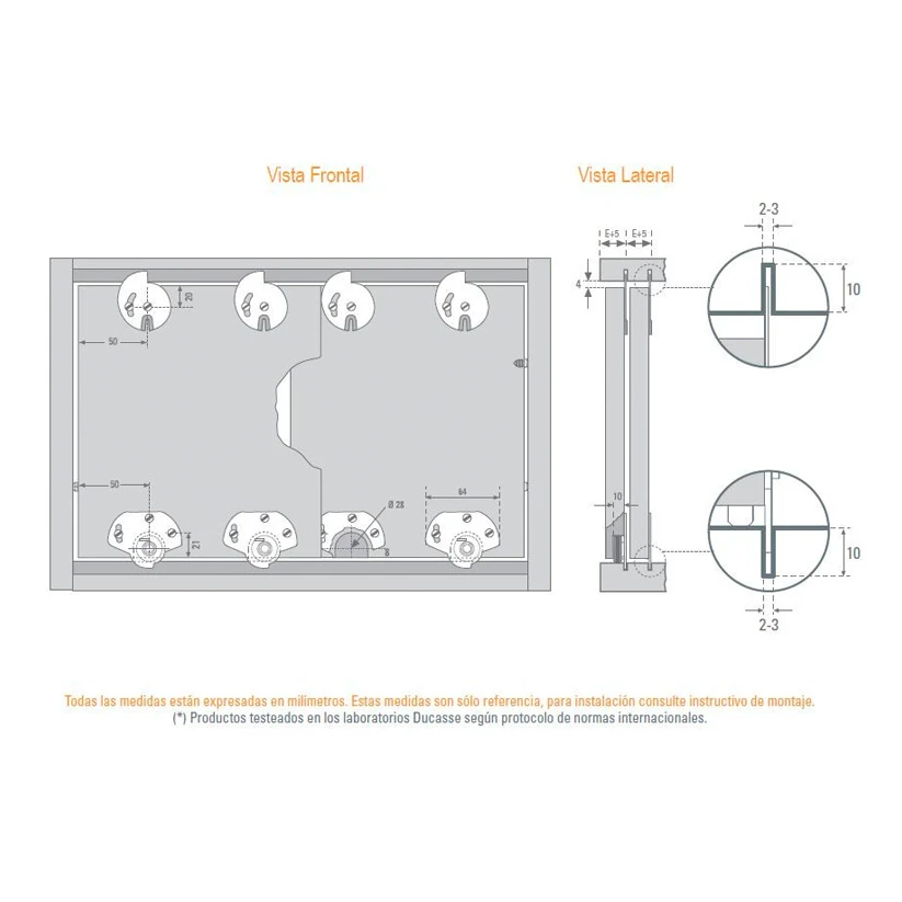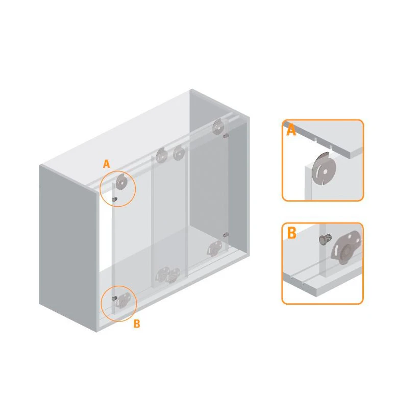 - Sistema para puertas de muebles traslapadas con capacidad de carga de hasta 15 kg. por hoja.