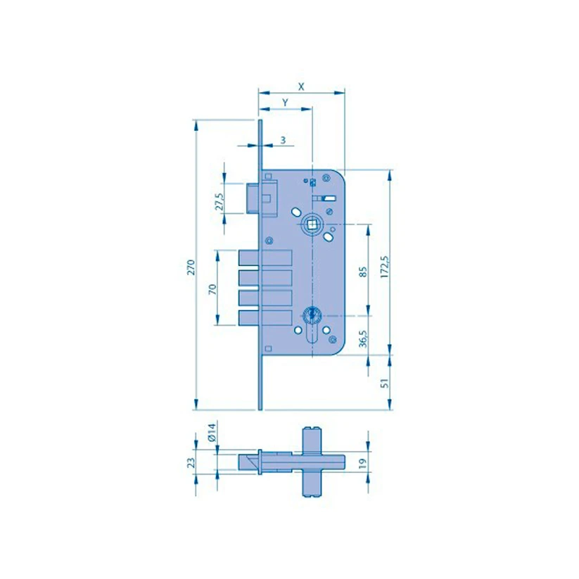 - Mecanismo de embutir con 4 bulones y resbalón.