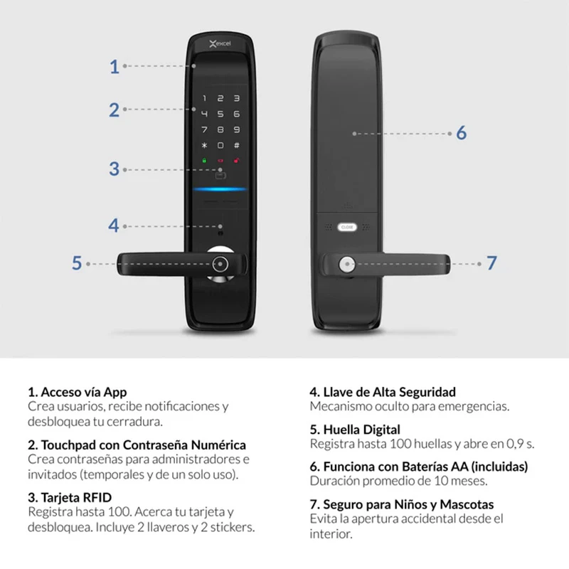 - App compatible iOS y Android: Excel Smart Doorlock.
