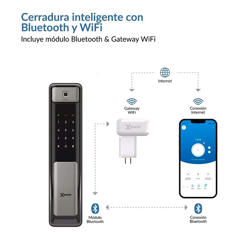 • Tipo de apertura: WiFi, Bluetooth, Huella Digital, Contraseña Numérica, Tarjeta RFID, y Llave de Alta Seguridad.