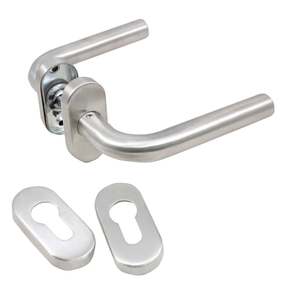 - Juego de manijas de acero inoxidable para cerraduras de perfil angosto