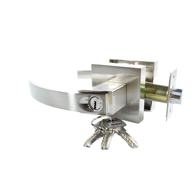 • Cilindro y pernos de latón, con 3 llaves de latón en acabado níquel satinado.