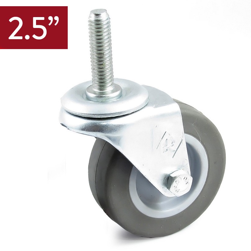 • Rodaja Estándar 2.5ʺ con ESPIGA ROSCA 3/8″, rueda de hule y buje.