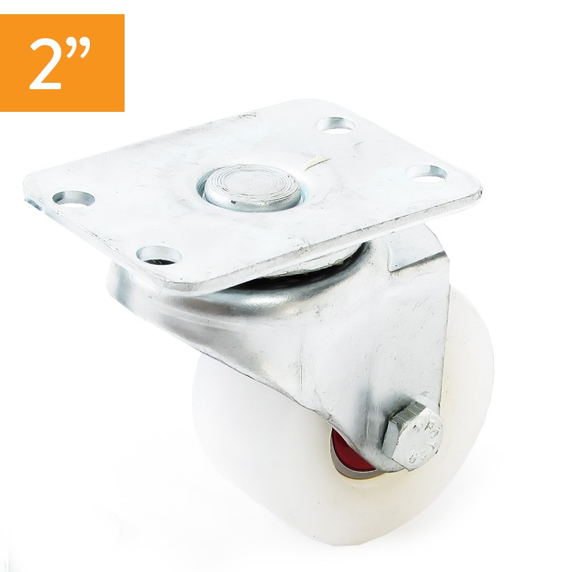 • Rodaja Estándar 2ʺ con Placa giratoria 65 x 48 mm, rueda de polietileno y baleros.
