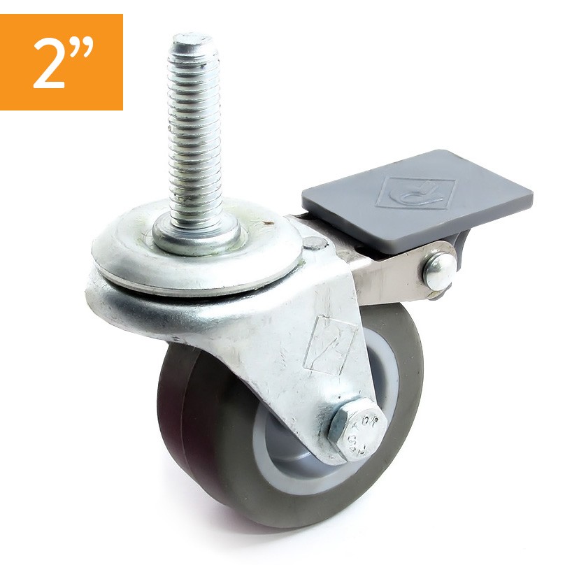 - Rodaja Estándar 2ʺ con espiga ROSCA 3/8″, rueda de hule buje. Acabado galvanizado.