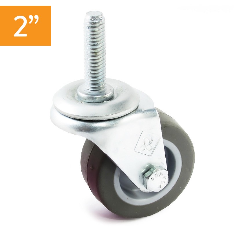 • Rodaja Estándar 2ʺ con espiga ROSCA 3/8″, rueda de hule buje. Acabado galvanizado.