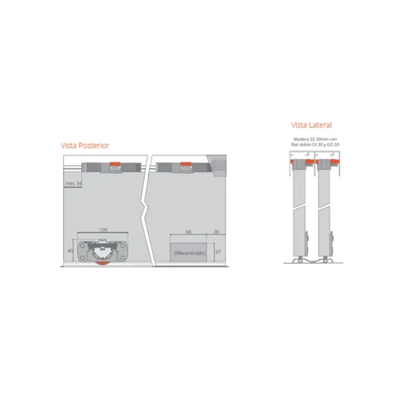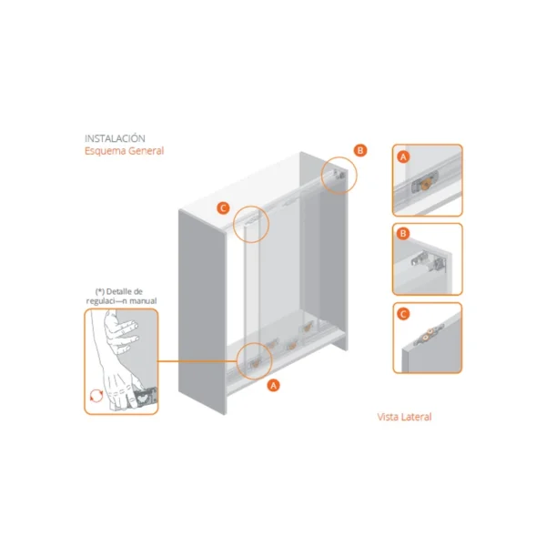 - Posibilidad de instalar en configuraciones de closet de 2 o más puertas.